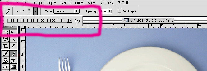 포토샵 브러쉬창이 작아졌어요