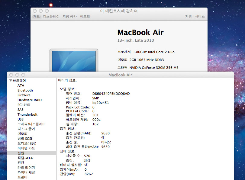 깨끗한 2010년 맥북에어 13인치 == 25만원
