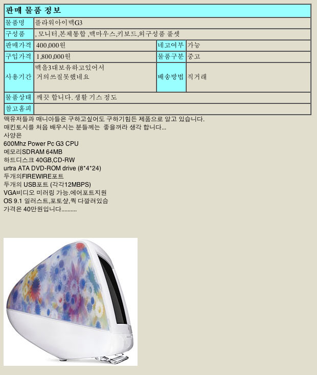 [판매완료] 초희귀품-예쁜 부품용 아이맥 플라워