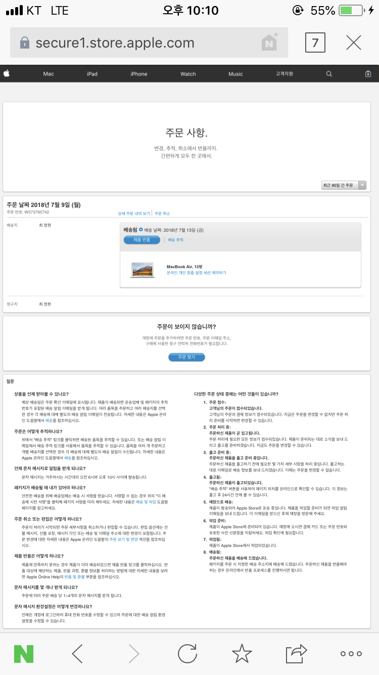 2018 7월13일에 배송 받았어요 13인치