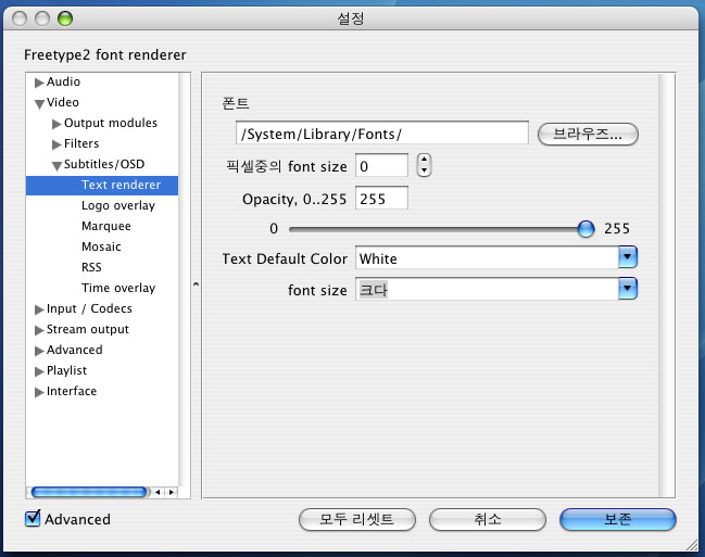 지금까지 어떻게 질답이 이어왔는지 모르겠으나, 어쩌면 서체의 문제가 아닐까 하며 한글 서체는 MPlayer에 담겨 있는 서체를 사용해 보시기 바랍니다.