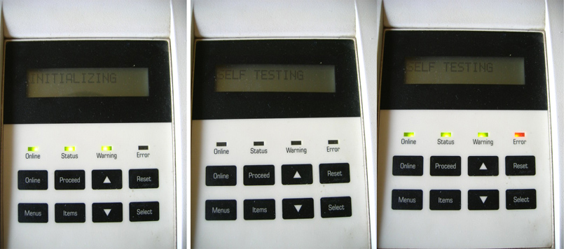 그런데 프린터가 self testing하면서 4가지 램프가 꺼졌다가 켜졌다가 하는데 원인이 뭔가요...