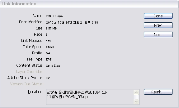 인디자인에서 링크 파일 열기