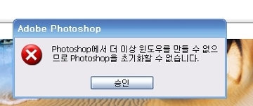 포토샵에서 더이상 윈도우를 만들 수 없으므로 포토샵을 실행할 수 없습니다