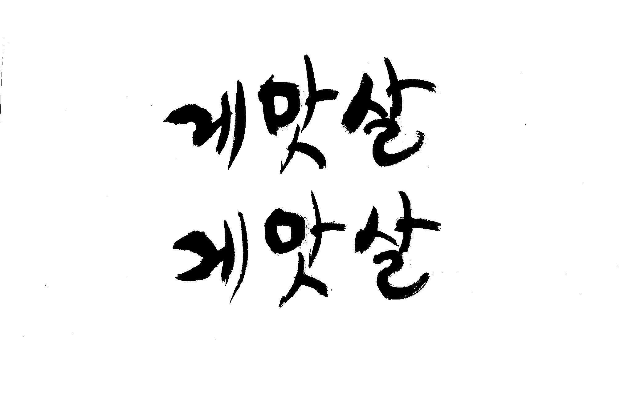 캘리 부탁드립니다. 김철호 일반 0 6611 2009.01.30 09:49 > > > > > 제가 이리저리 써보기도 했으나 너무 이상해서 도움을 받고자 합니다. > > 단어는 '게맛살' 입니다. 패키지디자인에 사용할 타이틀입니다. > > 급한사항이니 부탁드립니다. 감사합니다. ^^ > > >