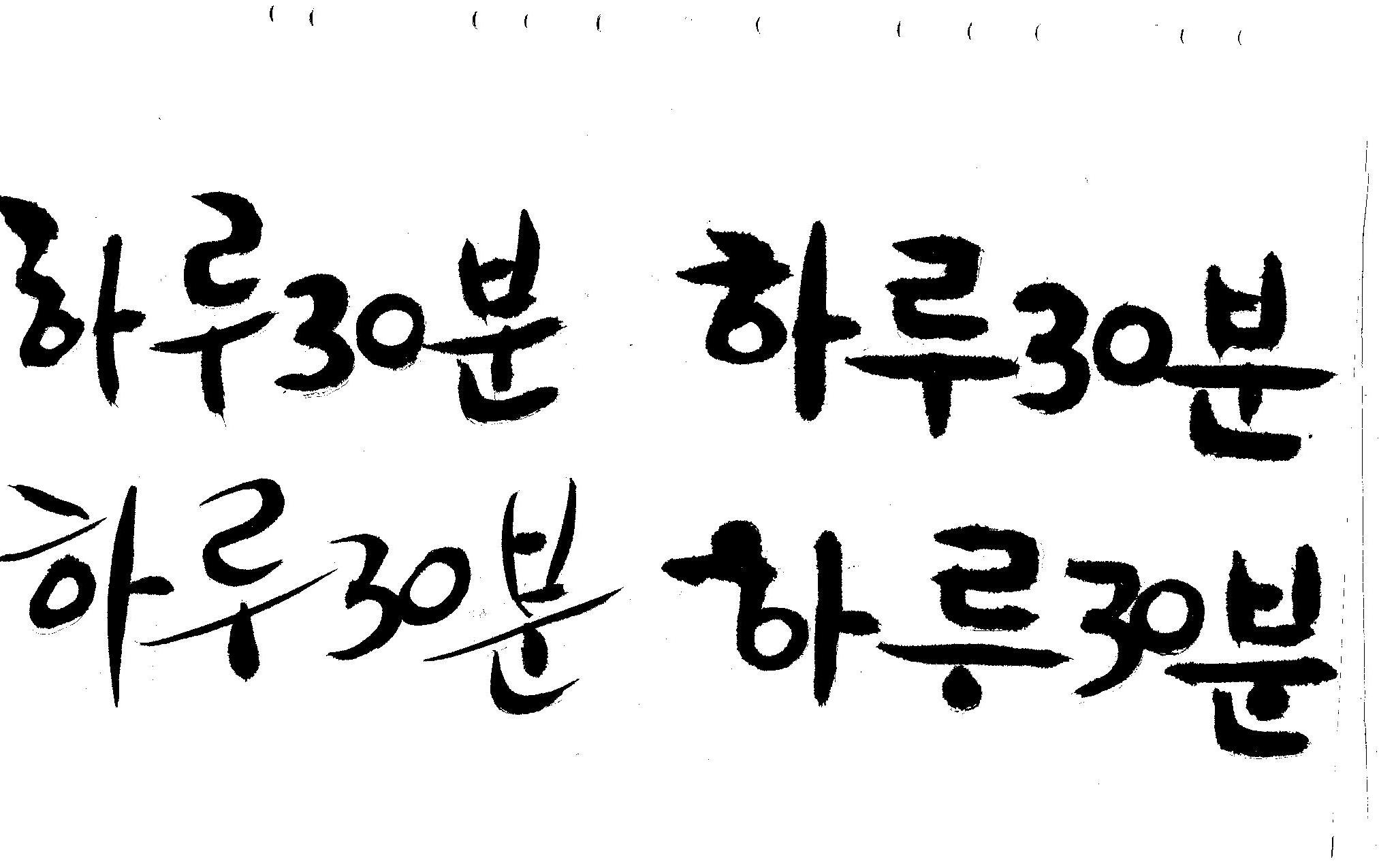 캘리부탁드려요 김철호 일반 0 6743 2008.12.31 13:43 > > 하루30분 <------- 이걸 캘리로 부탁드립니다 > 희망찬 새해 되세요... 스캔이 삐딱하게 되어 손좀 보셔야겠네요..