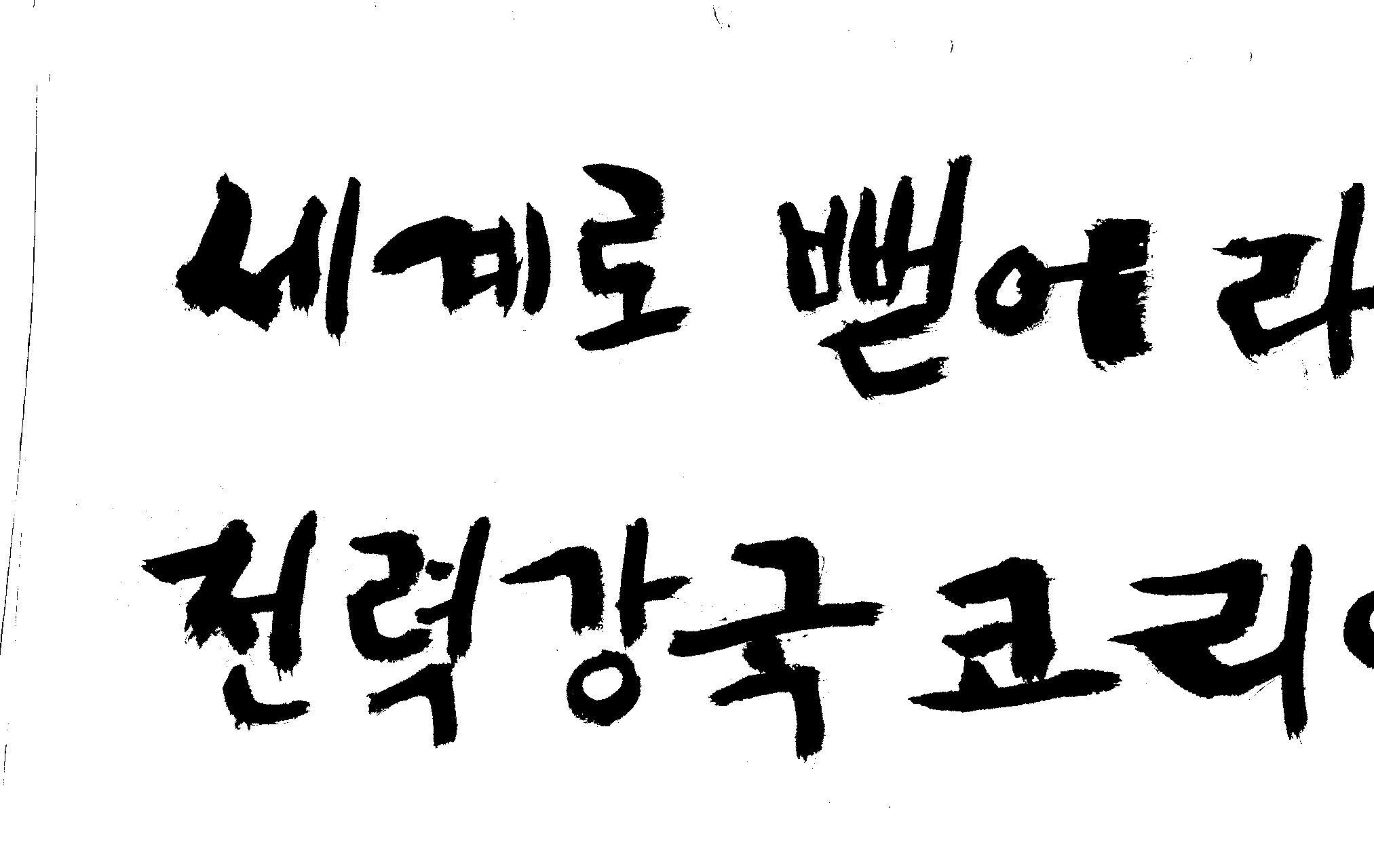 캘리 좀 부탁드려요!~ 김철호 일반 1 13083 2008.12.24 12:09 > > > > > > > > > 전력회사 신문광고를 하는데요 캘리로 멋지게 하고픈데 > > > 캘리프로그램으로 아무리 써도 느낌이 안나옵니다 ㅜ.ㅜ > > > 이런걸 부탁한다는 자체가 너무나도 염치없지만 부탁드립니다. > > > > > > 세계로 뻗어라! 전력강국 코리아 > > > > > 보기는 쉬워도 하기는 어려운게 > > 세상 모든 일 일겁니다. > > 그중에 캘리그라피가 그런 것일 겁니다... > > 스캔중에 글꼴이 잘린것은 서로다른글꼴서 편집하시길... > > 글수가 많아서 어쩔 수없네요... > > >