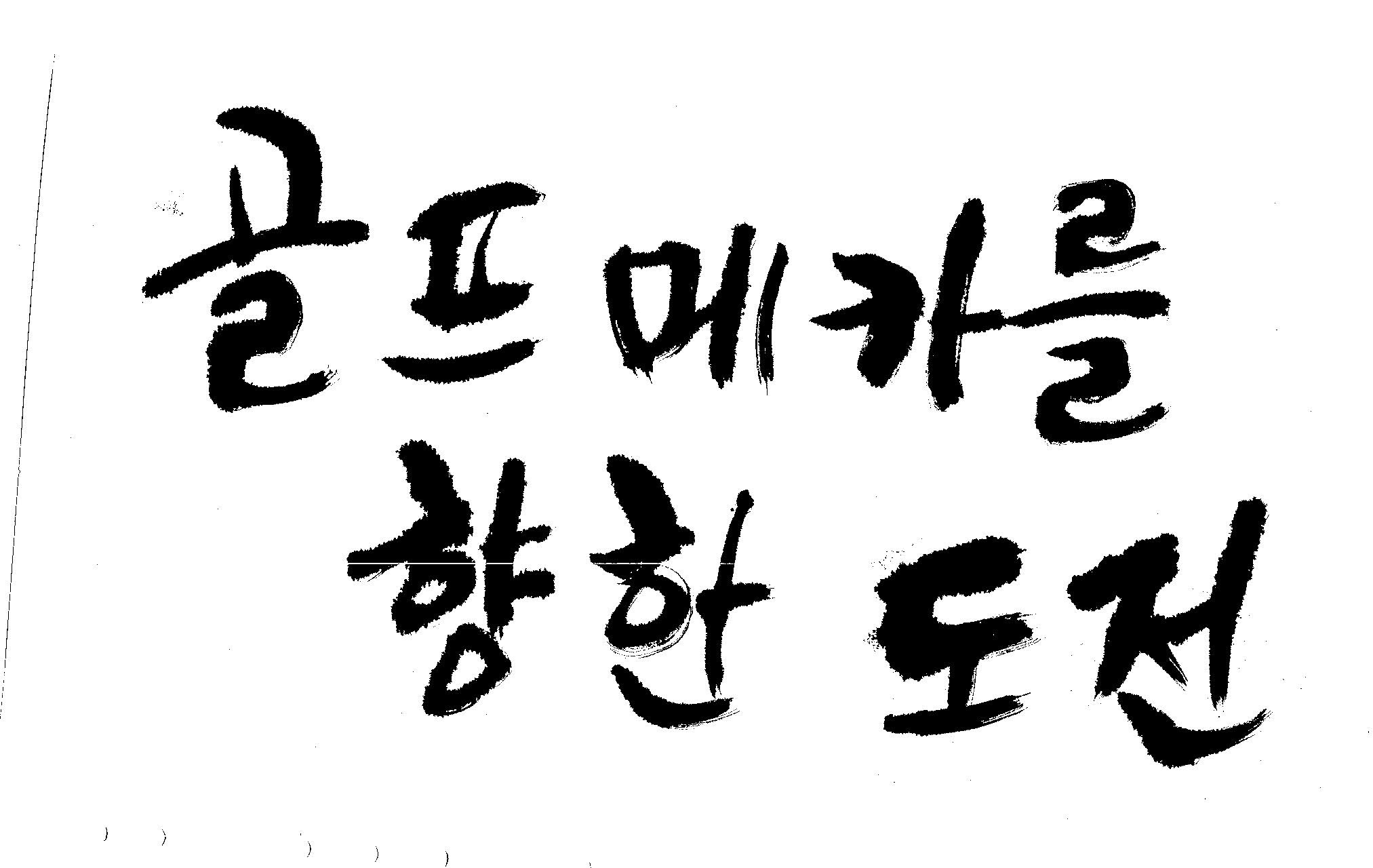 우경의 행복한 캘리세상-골프메카 김철호 일반 0 8289 2009.07.18 10:26 > > 리듬감을 최대한 살리고 ㅡ 스포츠의 운동감과 밝음 > 기교섞인 획을 배제--일반적인 느낌 > 굵기변화를 통하여 도전 낱말을 강조 > 스타일은 비슷하지만 ...한 사람이 썼으니까 ㅎㅎㅎ > 서로 다른 글꼴을 올린 것은... 비교하여 보시고... > 편집자에게 선택권을 주는 것입니다 >