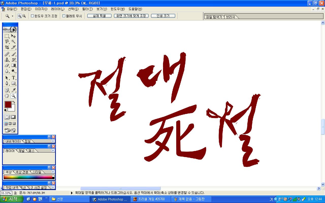 정중히 캘리 부탁드립니다. -_- 류재철 일반 0 5568 2009.11.16 11:18 실력자 분들이 많이 계셔서 이렇게 염치없게 부탁드립니다. - 절대死절 : 첨부한 파일 참고해주시면 감사하겠습니다.(약간 거친느낌? ^^;;) : '절'자의 ㅈ은 가위로...^^;; : 포스터 제작용이라 ai 파일이 필요합니다. 대학동아리 연극공연 포스터로 쓸 예정입니다. 비상업적인 공연이라 이렇게 부탁드립니다.