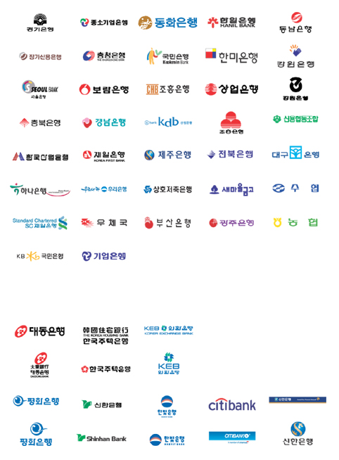 충북은행, 경남은행, 산업은행, 구)조흥은행, 신용협동조합
