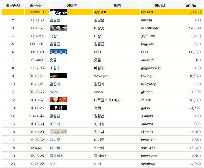 사과야 왜 갑자기 포인트순위랑 출석에 집착하는겨;;;