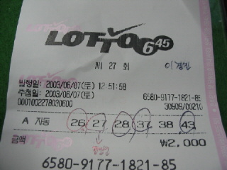 근데 우스운건 얼마전 당첨번호가 1.2.3.15.20.25였다는.........ㅠ.ㅠ
