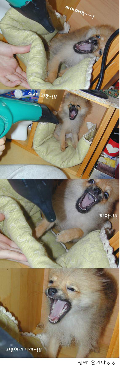 저 강아지가 뭔 잘못이 있다구.............. 예전에 내가키우던 강아지는 바람입으로 불어주면 많이 좋아했는데....