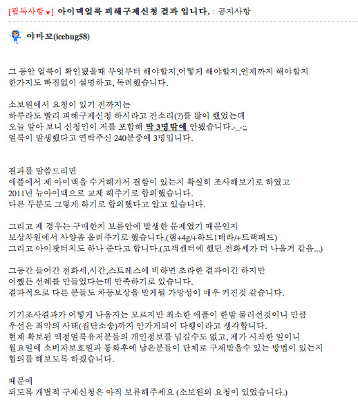 이런현상을 가지고 계신 모든분들이 충분한 서비스든 보상이든 받으셨으면 좋겠어요
