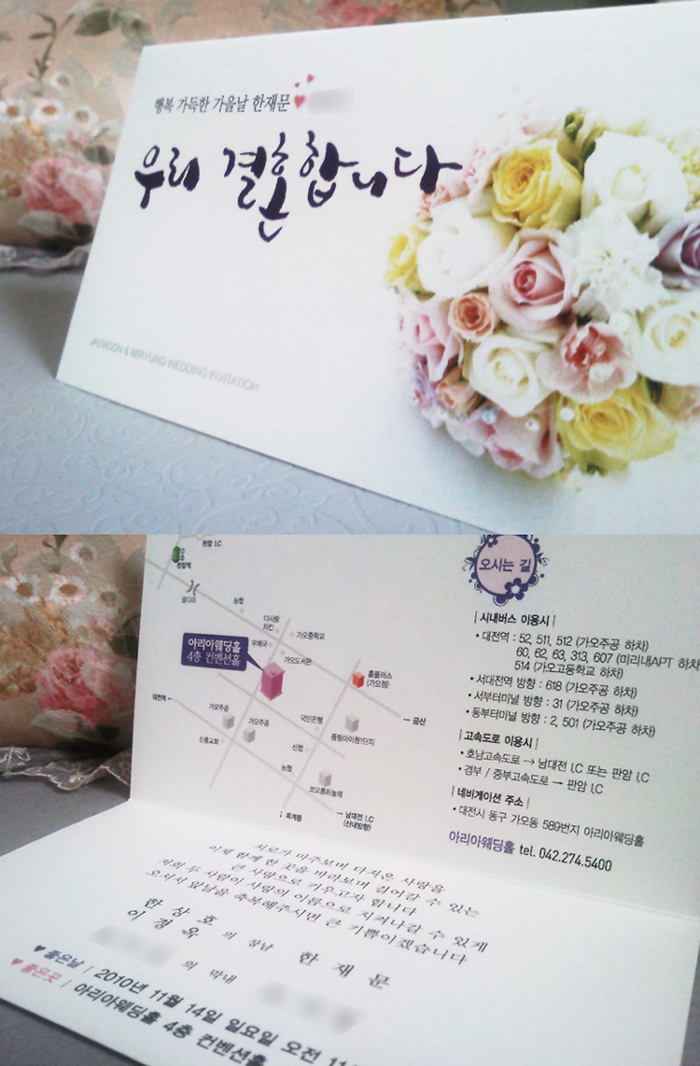 오호... 청첩장도 캘리로 이뿌게... 축하드립니다!  두분 너무 잘어울립니다 ㅎㅎ