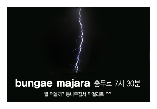 ^^ 충무로 인쇄골목이라...도데체 충무로 인쇄골목이 어디예요? 옛날 오성볼링장 있던 골목을 말씀하시는 것? 이따 뵙죠.......막거리... 뒤가 넘 무서운데.... 술 많이 먹이기 없기요..^^