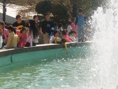 분수대에 손 담그려는 멀리 잘 안보이는 모자. ㅋㅋㅋ...