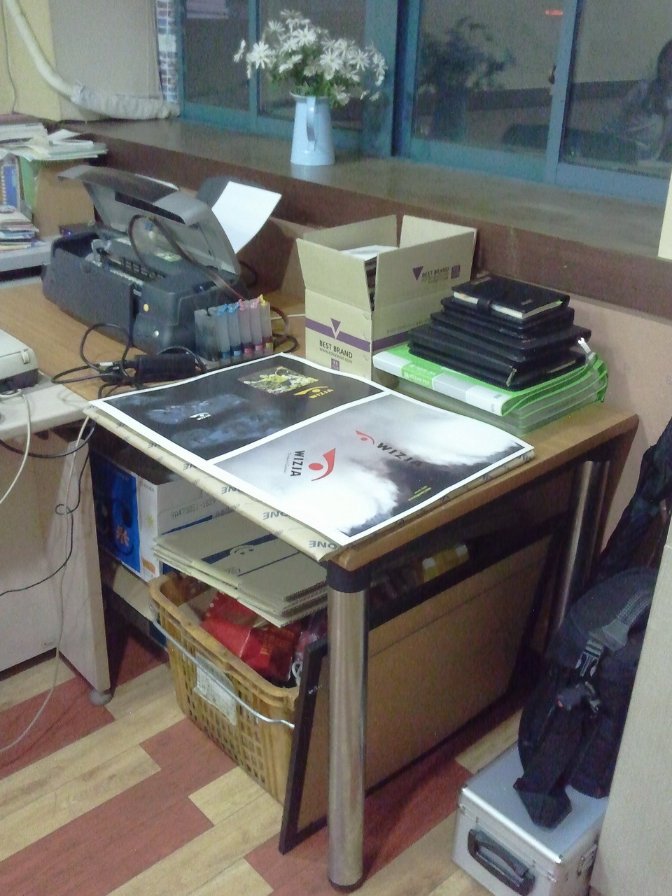 사무실 이전 관계로 제가 쓰던 작업용 큰 테이블(프린터기가 올려져 있는 노랑색)과