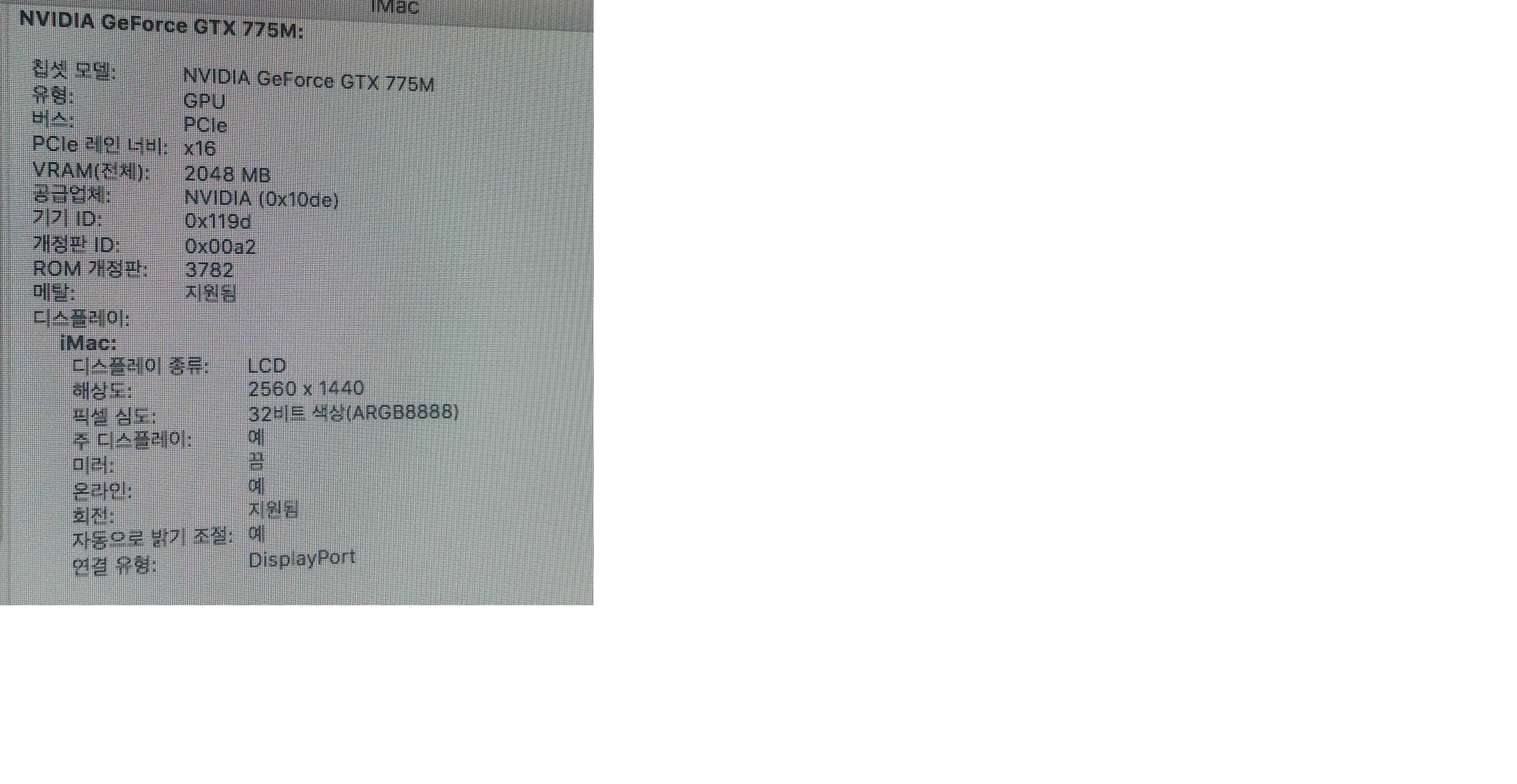 특이사항 없으며 포맷후 맥os 설치된 상태