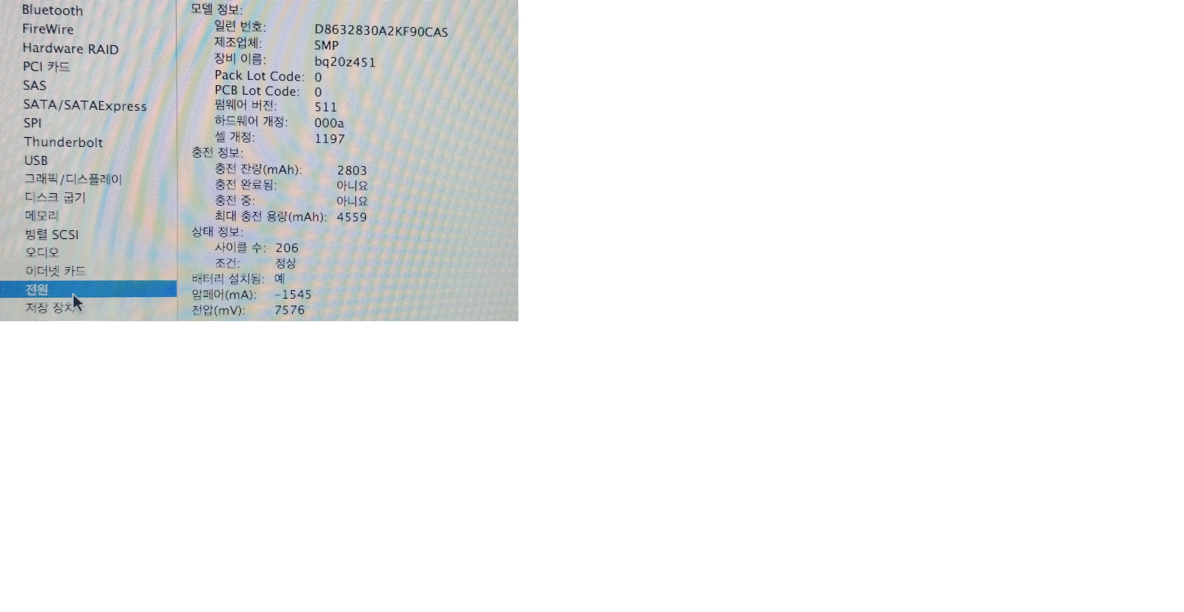 사이클 수 206  최대충전용량 4559