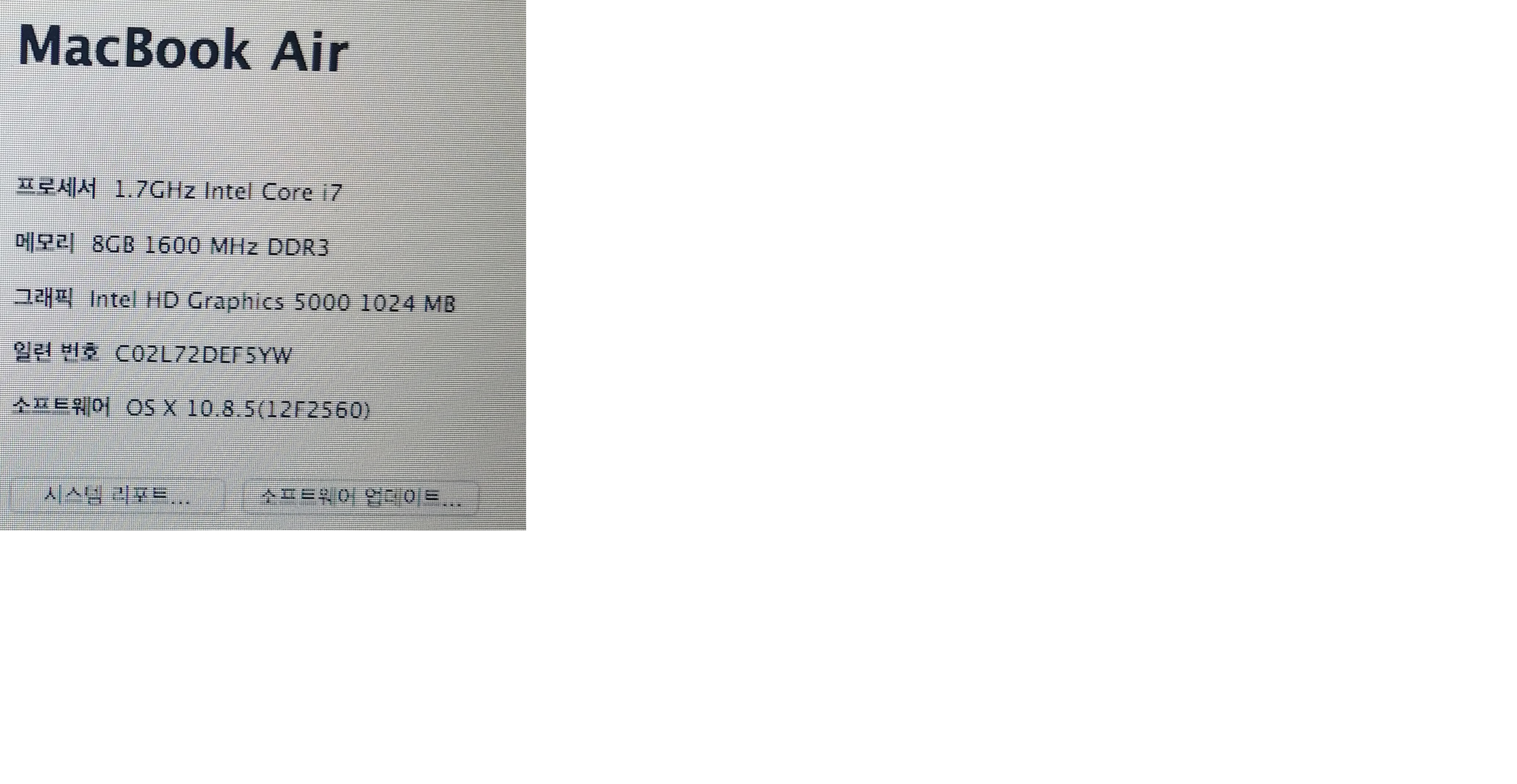 2013 맥북에어 11인치 i7 ssd512G ram8G 팝니다