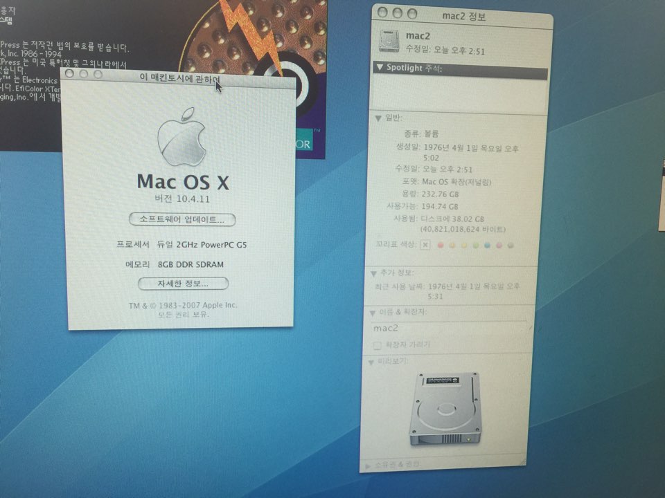 G5 애플컴퓨터 듀얼 2.0 8G램 /HDD250G 쿽3.3구동 9만원에 팝니다. 사진있음