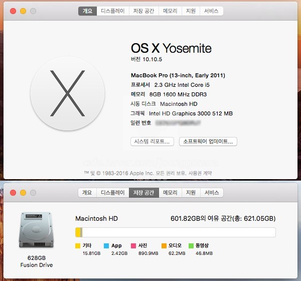 (i5-2.3, Ram:8g↑, Storage:FusionDrive 620g↑, S/W설치)