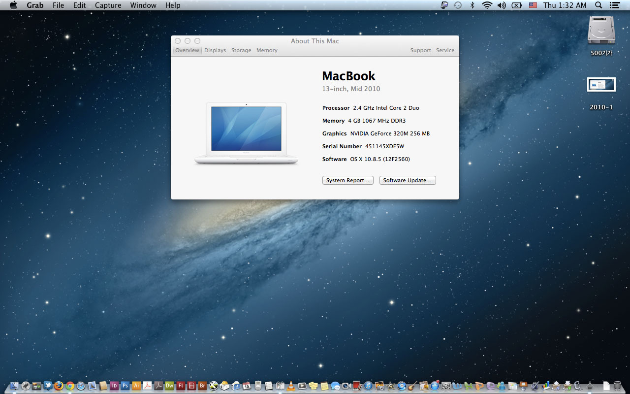 2010년 화이트 맥북 13인치- 맥 디자인프로그램들이 사진처럼