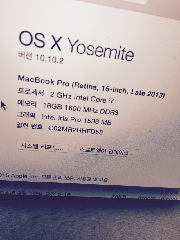 작년 2014년 6월 20일 음악작업을 하기위해 두달치월급을 투자해 메모리 업글까지 하며 샀는데.. 맥 자체가 아에 처음이고;; 인터넷 여는법도
