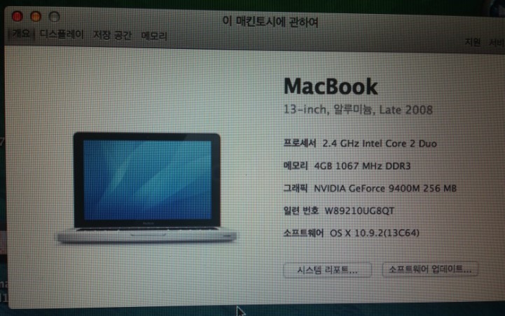 램 4GB로 업그레이드 되었고, 매버릭스 클린설치 된 상태 입니다.