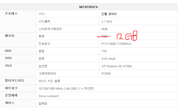 imac 판매 (mc812kh/a)