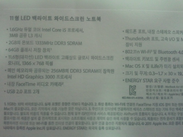 2011 최신형 맥북에어 11인치 기본형 팝니다 MC968KH/A