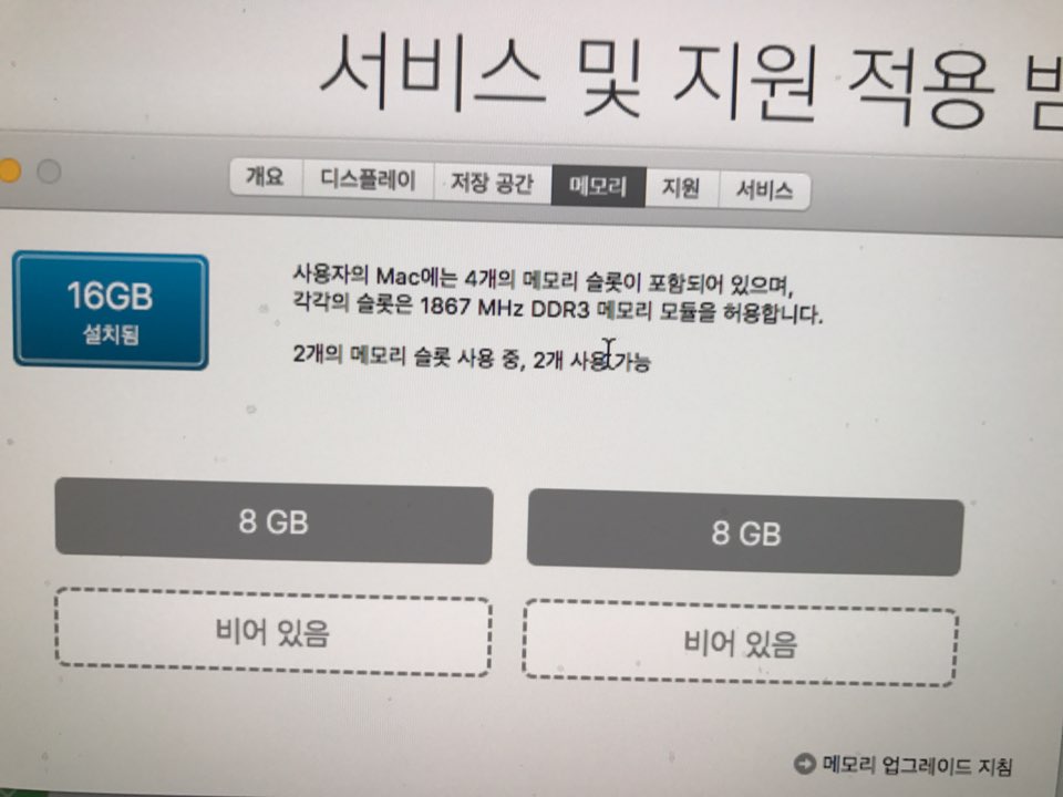 메모리 : 16GB 1867MHz DDR3