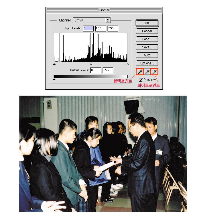 레벨에서 블랙포인트로 조정해주어도 나아지는거같네요~