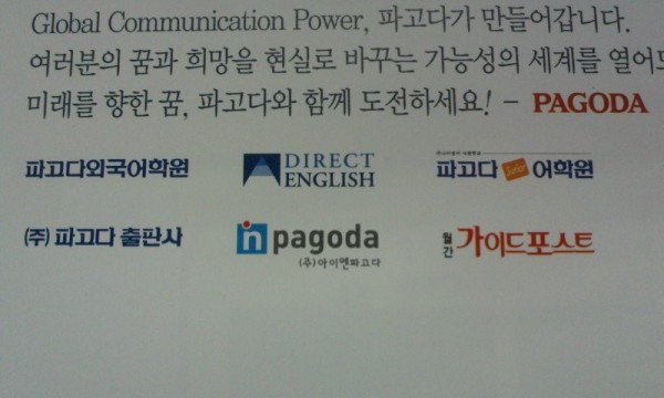 [급]파고다관련 로고소스좀 부탁 드려요 티엔미 0 7089 2010.10.27 18:34 파고다외국어학원 DIRECT ENGLISH파고다주니어어학원(주)파고다출판사NPAGODA(주)와이엔파고다월간 가이드포스트