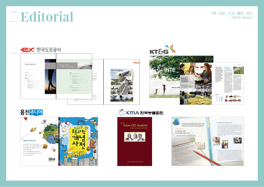- 기타 : 잡지, 브로셔, 사보, 각종 도서 & 북커버, 교재(학습지), 교회디자인 등 다수.